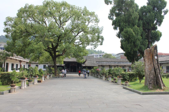 下图右边苍翠之柏,属唐代种植,至今已有1200多年历史。清代时纪晓岚来汀州试院监考,为它写下“参天黛色常如此,点首朱衣或是君”的对联。