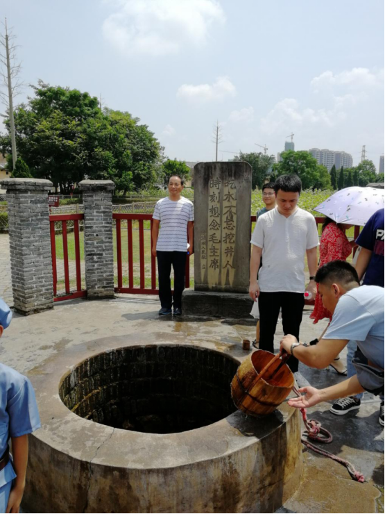“吃水不忘挖井人,时刻想念毛主席”,这口红井,是当年毛主席带领着村民一起开凿的,我们打了井水,试喝了一小口,还有好多小朋友围着井想要装水,希望孩子们能明白“吃水不忘挖井人”的道理。