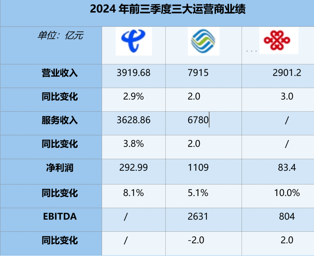 岁月不居,时光如流,转眼间2024年已经走过四分之三。一如往年,三大运营商近期陆续发布了2024年前三季度报告,为这个深秋增添了收获的色彩。